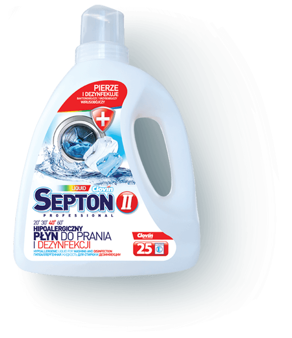 Septon II to rewolucyjny środek do prania, który zabija wirusy i bakterie już w 40 stopniach, a przy tym jest tak delikatny, że można go stosować do prania ubranek niemowlęcych już od pierwszego dnia życia.